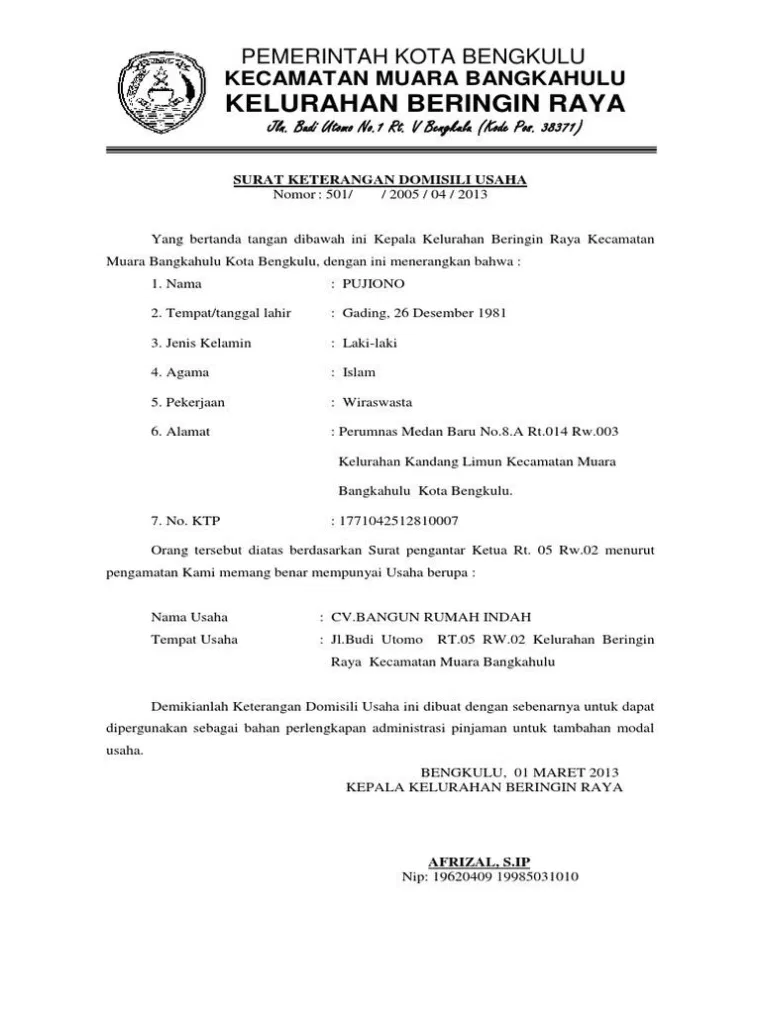 Contoh Surat Keterangan Domisili Kontrak Rumah