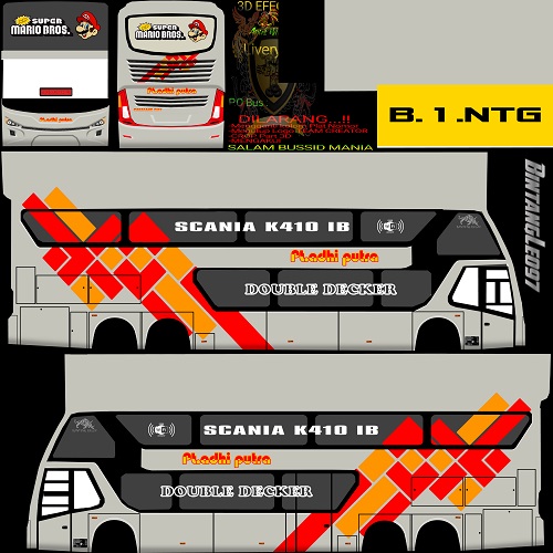 Tambahan! Berikut kumpulan koleksi livery BUSSID super double decker jernih update terbaru untuk Mod Bus Bimasena. Silahkan download dan guanakan livery bussid berikut secara cuma-cuma.