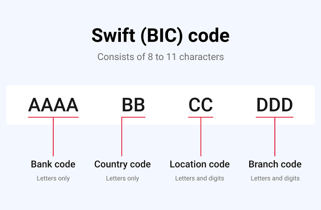 Jika dilihat dari karakteristiknya, Kode Swift ini biasanya terdiri dari 8 sampai 11 digit kombinasi huruf dan angka, contohnya seperti AAAABBCC123. Kode AAAA menunukan nama perusahaan atau nama Bank, kemudian kode BB menunjukkan kode negara bank itu sendiri, lalu kode C dan angka mewakili kode cabang atau lokasi bank itu berada (Kota).